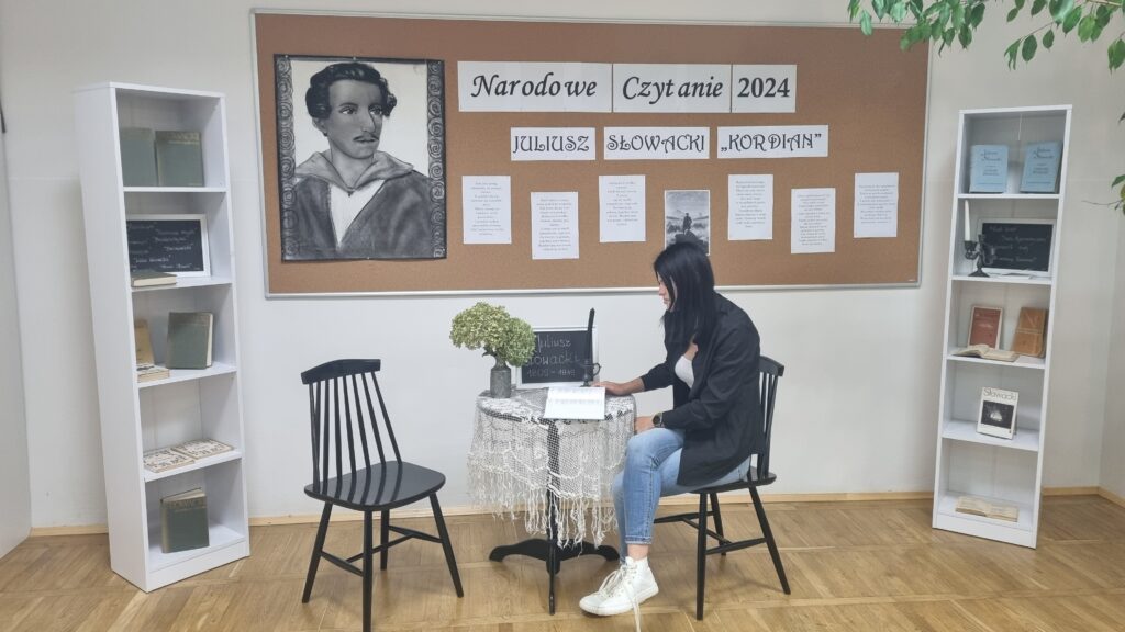 i moralnych wyborów jednostki. Przedstawiciele Bibliotecznego Klubu Książki oraz kl. IV TŻ, II TŻ, II Tm i II ZK zorganizowali specjalną sesję czytania, podczas której zapoznali słuchaczy z fragmentami ?Kordiana?. Dramat Słowackiego, mimo że powstał w XIX wieku, wciąż jest aktualny. Wiele młodych osób odnajduje w ?Kordianie? odbicie swoich dylematów i poszukiwań. Niektórzy z uczniów podzielili się swoimi refleksjami po przeczytaniu fragmentów utworu. To pokazuje, że literatura ma moc łączenia pokoleń i inspirowania do głębszej analizy rzeczywistości. Serdecznie dziękujemy wszystkim uczniom za zaangażowanie i wspólnie spędzony czas. Dzięki temu, Narodowe Czytanie stało się stałym punktem w kalendarzu naszych szkolnych wydarzeń i będzie zachęcać do dalszego odkrywania piękna polskiej literatury.