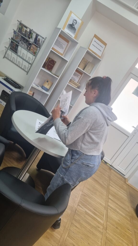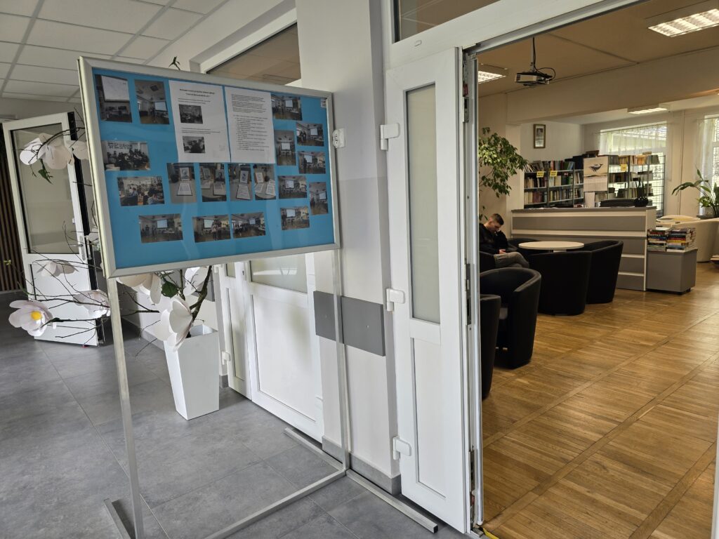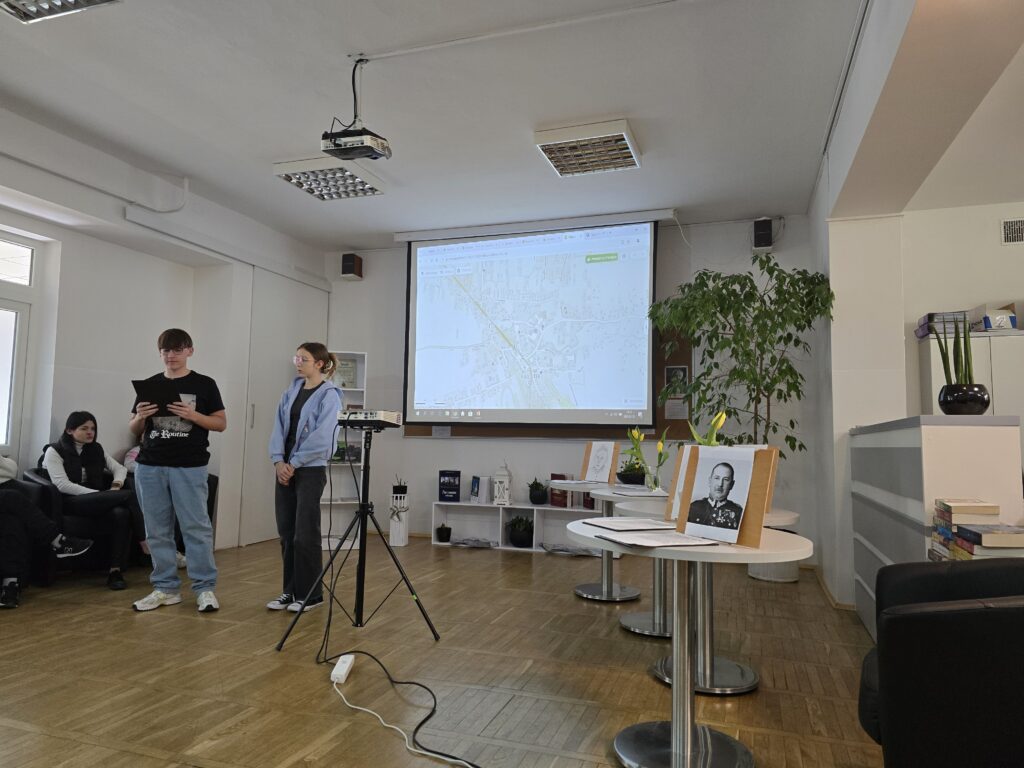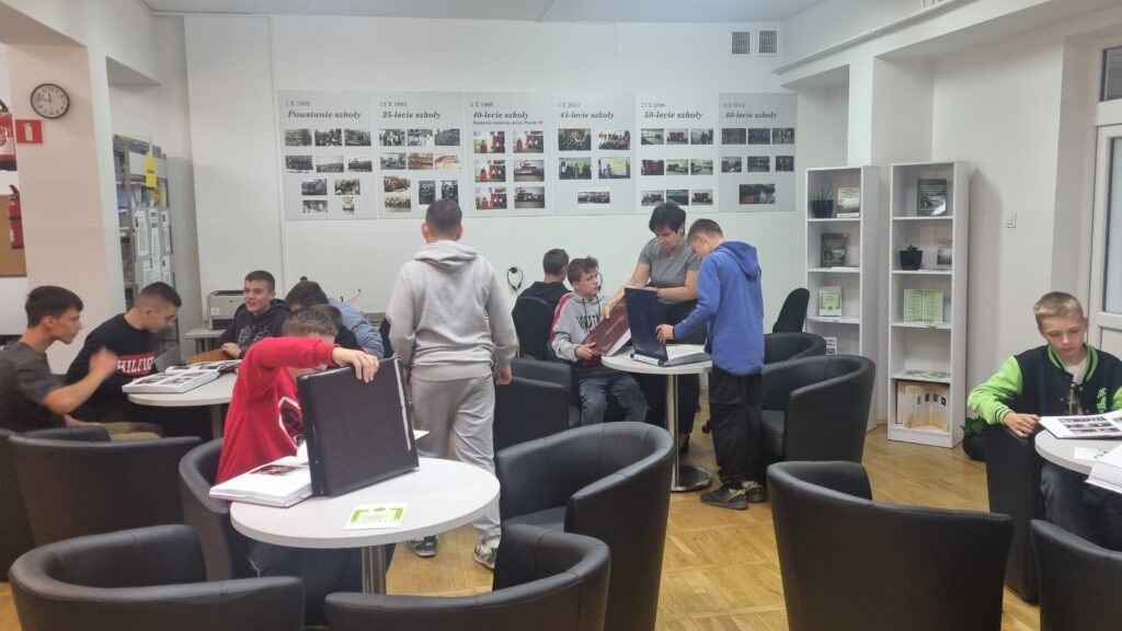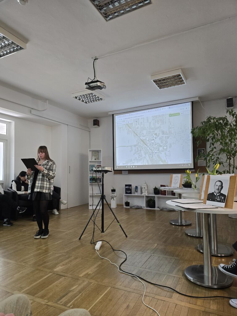 I tak 20 marca 2025r. w czytelni biblioteki szkolnej przed zgromadzoną grupą nauczycieli, koleżanek i kolegów przedstawili swoją pracę w projekcie edukacyjnym „Patroni brzosteckich ulic”