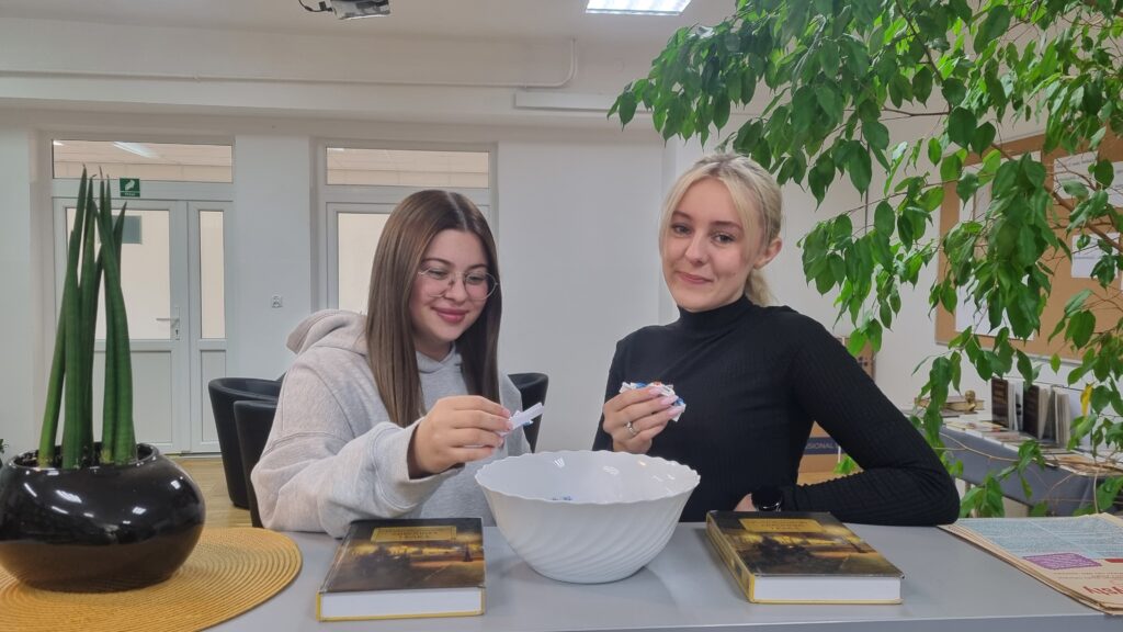 Spotkanie – wywiad „Czego o mnie nie wiecie?” z ucz. kl.2 tw Karoliną Rak przeprowadzony przez Julię Chmurę z Bibliotecznego Klubu Książki.
