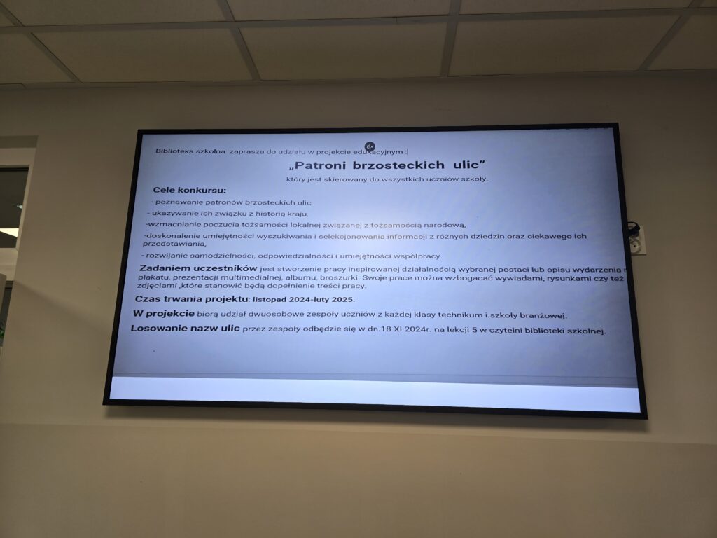 Realizacja projektu edukacyjnego „Patroni brzosteckich ulic”
