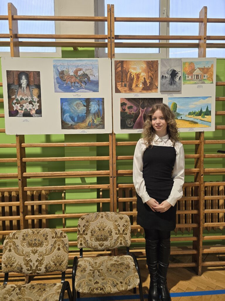 W drugiej części spotkania zostały przedstawione wyniki konkursu plastycznego. Prace przedstawiające poezję Mickiewicza przygotowały różną techniką m.in. uczennice technikum architektury krajobrazu Nikola Raś i Julia Zając, Magdalena Szydłowska z technikum żywienia i gastronomii oraz Karolina Rak z technikum weterynarii. W tym konkursie 3 miejsce zdobyła pracą przedstawiającą scenę z Dziadów również Karolina Rak. Wszystkim naszym uczennicom nalezą się duże podziękowania za udział w obu konkursach, czas poświęcony na przygotowanie prac plastycznych oraz nauce poezji a także piękne reprezentowanie naszej szkoły wśród Zespołów Szkół Sieci Szkół Rolniczych. Finał Konkursów zakończyła dyrektor tamtejszej szkoły wręczając wszystkim recytującym uczniom dyplomy uznania a zwycięzcom dodatkowo cenne nagrody. Gratulując wszystkim wykonawcom zaprosiła na przygodę z wieszczem w kolejnym roku szkolnym.